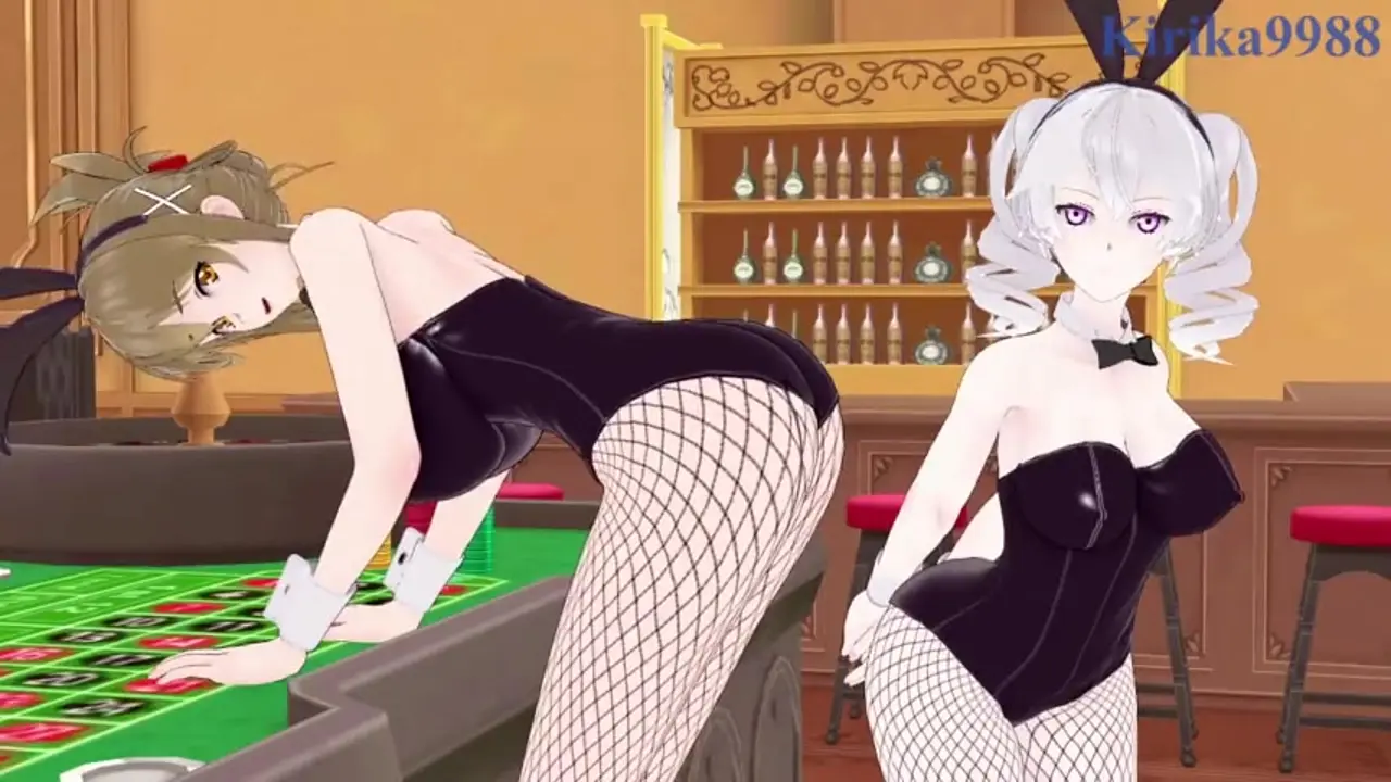 Chitose Kisaragi and Nine in intense anime lesbo play at a casino