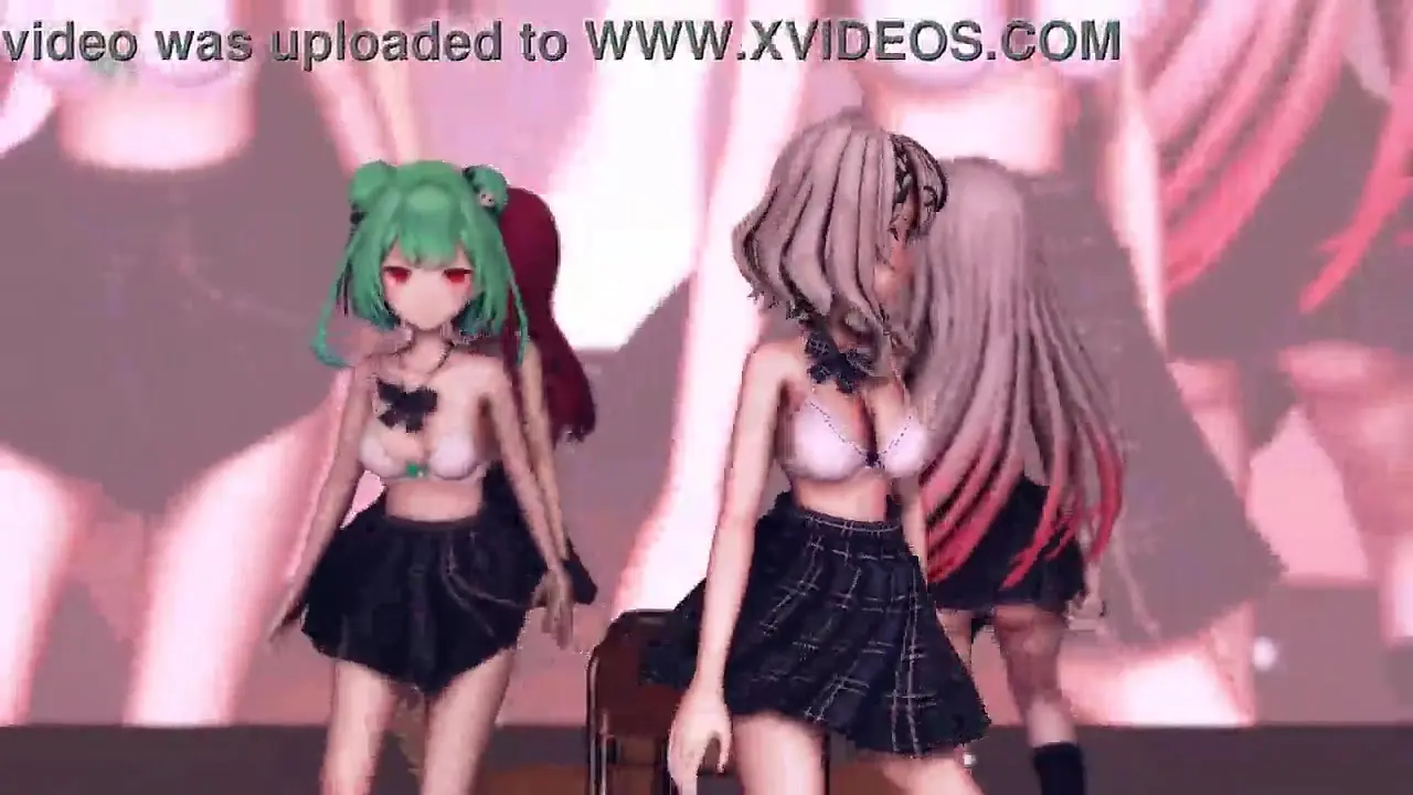 Ayame Marine and Chloe, two gorgeous teens with big and small tits, perform a sexy striptease for the viewer. They're fully nude, showcasing their assets while dancing and looking at the viewer. Their sultry moves tease their pussies and asses.